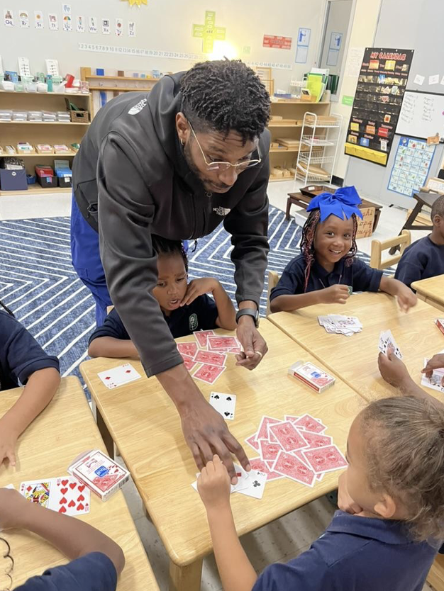 Mrs. Robinson’s son, Trey Smith — Optometry Technician at MCV — deals out fun with a deck of cards. |