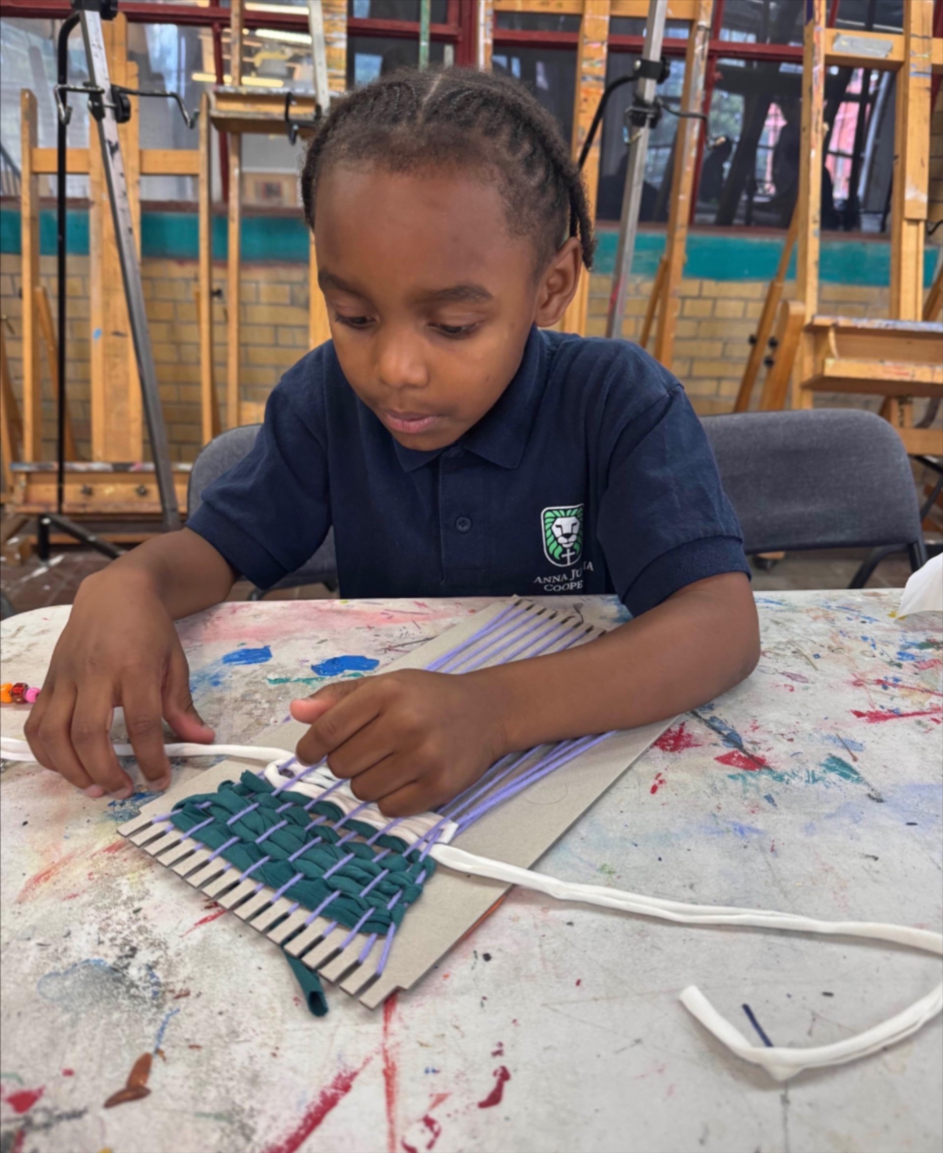 On a recent field trip to the Visual Arts Center of Richmond, first grade students tried their hand at a playful weaving project. The visit was inspired by VisArts’ recent “Interwoven” exhibition, where 14 artists explored weaving in imaginative ways. We’re grateful for our 12-year partnership with VisArts, which includes Make Space—an after-school art and mentoring workshop for our sixth grade girls—and for the creative inspiration and expression they continue to bring to our students.
