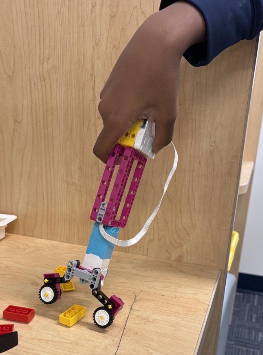 flower Lego kits and rotated through weekly challenges in class: a robot arm that can pick up objects, a vehicle programmed to navigate obstacles, even a