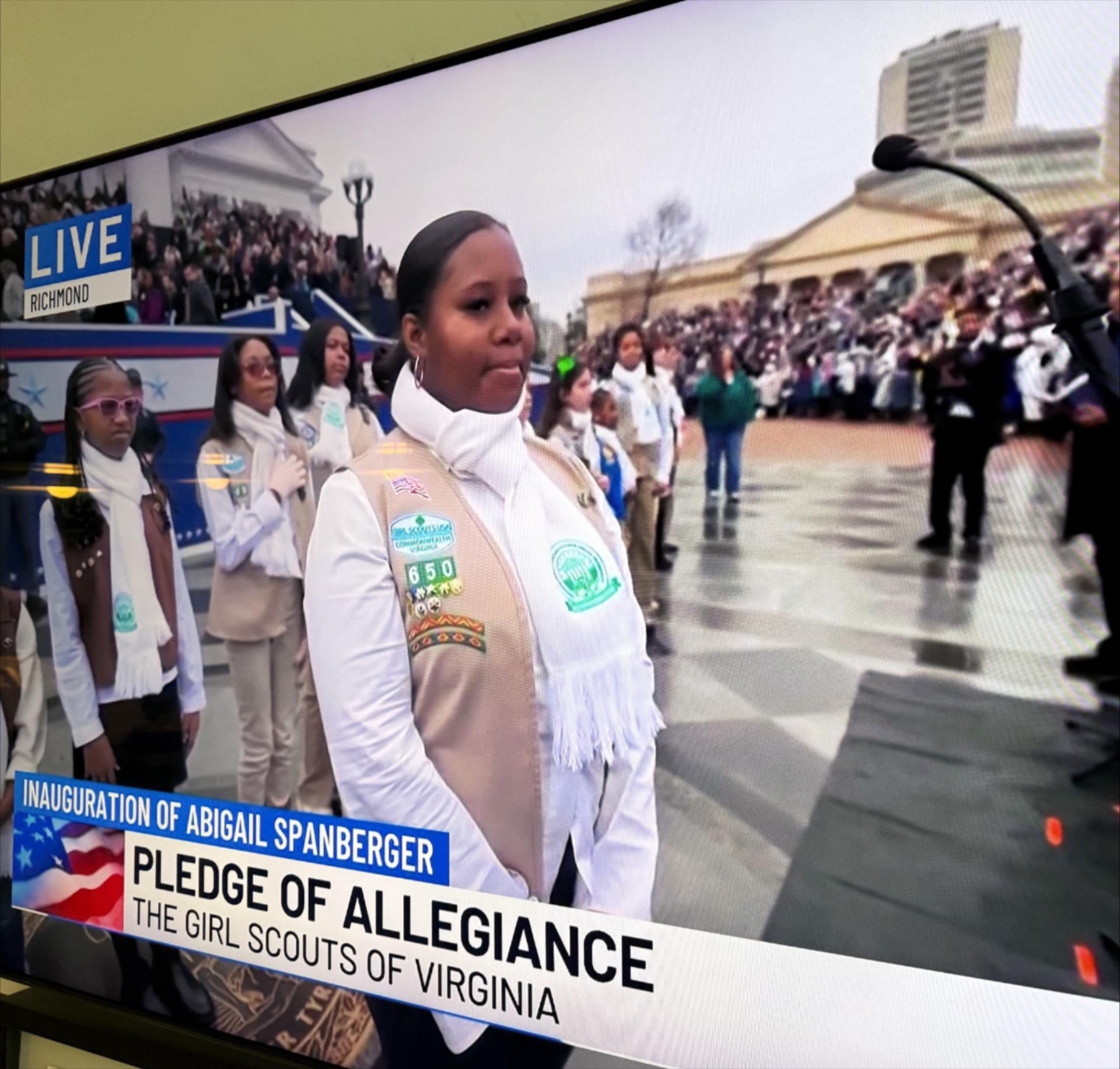 Curious how it all came together, we reached out to learn more. Knewlyn has been a Girl Scout for many years and is one of the oldest members of her troop. When Governor-elect Spanberger invited her troop to participate, there was no doubt who should step up to the mic. Knewlyn has been leading prayers and readings at her church home, 31st Street Baptist Church, for years, building the confidence and presence that were on full display that day.