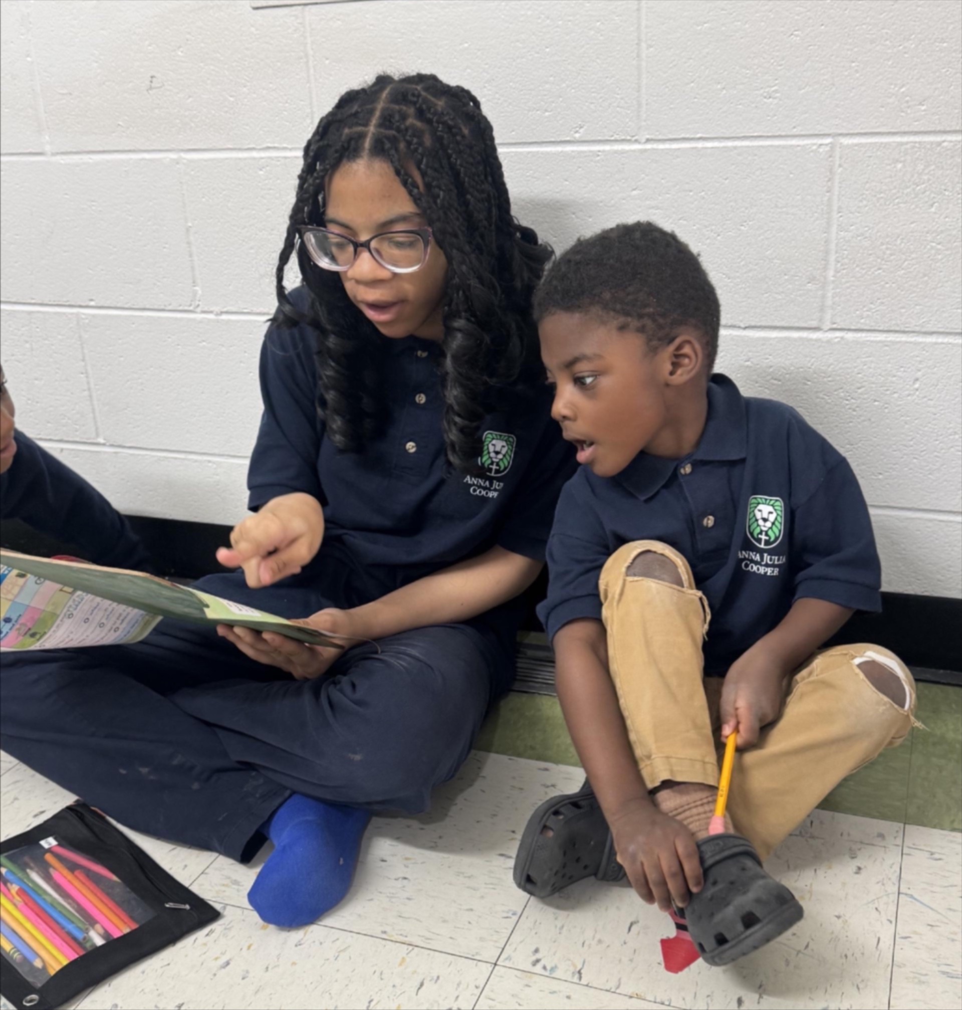 Moments like this are happening every day at Anna Julia Cooper School. March brings Read Across America Week, but at AJC, building confident readers is much more than a once-a-year celebration—it’s a daily commitment. From one-on-one support for our youngest learners to middle school reading buddies who show up week after week as volunteers, students are surrounded by people who believe in their growth. Our Title I Reading Specialist works with K–2 students daily, and our growing wrap-around literacy program provides speech therapy and targeted reading support—all right here at school, and free of charge for families. Our dedicated teachers and librarian create spaces that nurture a love of reading and help students see themselves as capable readers.